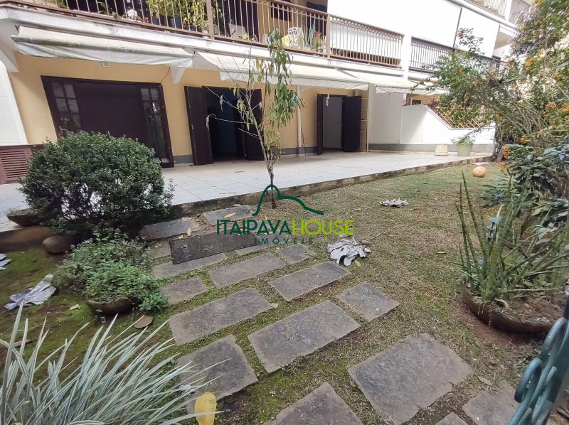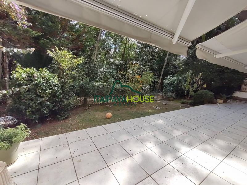 No estilo casa de campo, amplo apartamento Garden (térreo) voltado para sossegado bosque. É composto de varandão, sala ampla, cozinha espaçosa com área de serviços integrada, lavabo, 02 ótimas suítes, jardim privativo; 02 vagas de garagem. O condomínio oferece estrutura de lazer e portaria 24 horas..