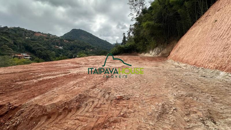 Terreno fora de condomínio, localizado na Estrada das Arcas, superfície de 2.100m², pronto para construir, com a execução de terraplanagem, platô de aproximadamente 600m² (planos) e rampa de acesso já realizados. A vista é espetacular e está a aproximadamente 4 km do centro comercial de Itaipava e próximo ao Itaipava Tênis Clube. .