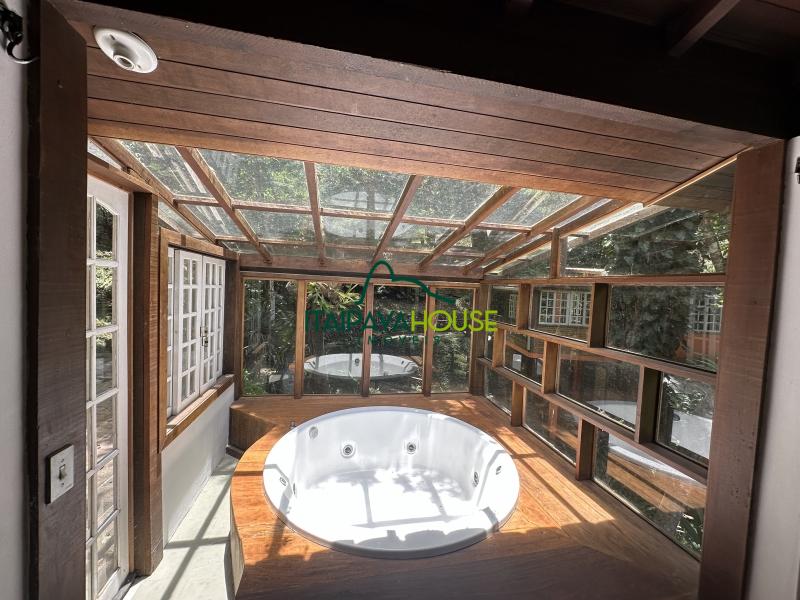 Na casa Principal: Construção estilo rústico, em alvenaria. É constituída por sala, cozinha pequena, banheiro, 02 quartos (sendo 01 suíte com banheira de hidromassagem em deck), varanda em deck descoberto; área de tanque, forno iglu para pizza;