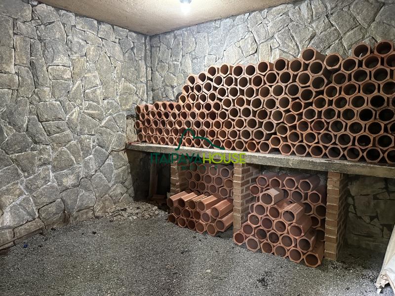 Na construção duplex, a parte superior contempla 02 salas e 1 suíte, área integrada para apoio de cozinha; já no anexo inferior, dispõe de sala com pequena varanda de inverno com teto de vidro, pia de apoio e bancada; 02 quartos, 01 banheiro; adega e quarto para guardados na parte externa.